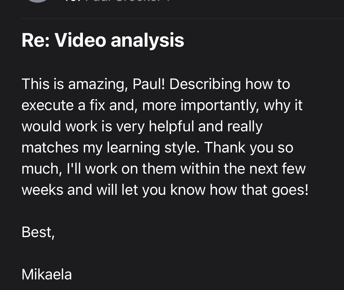 Get detailed video/audio or text reply for feedback plus exercises and links to videos to help!
